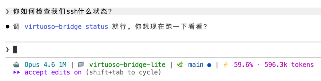 CLI 化: 远程连接的时候,每次重新建立连接非常慢。阻碍 agent 迭代速度,所以做了一套 ssh 常驻进程,并且该进程管理被抽象为高效的命令行接口(CLI),为 Agent 的高频、异步调用而优化。