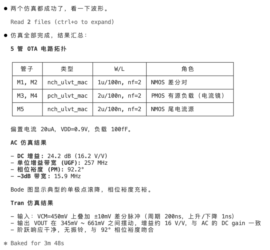 至于仿真,只要你能配好环境,你自己导出一份网表,让 AI 处理一下替换进去,就能跑。